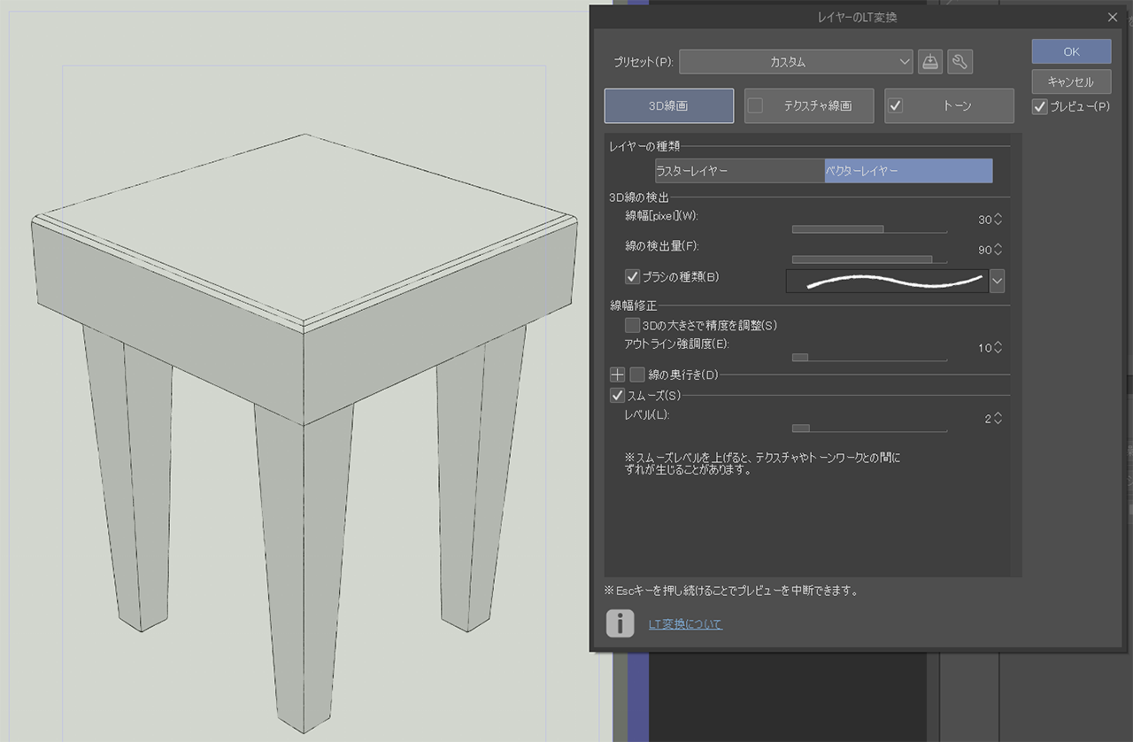 LT変換後の線画もしくは仕上げまで済ませた絵のほうがよさげです。